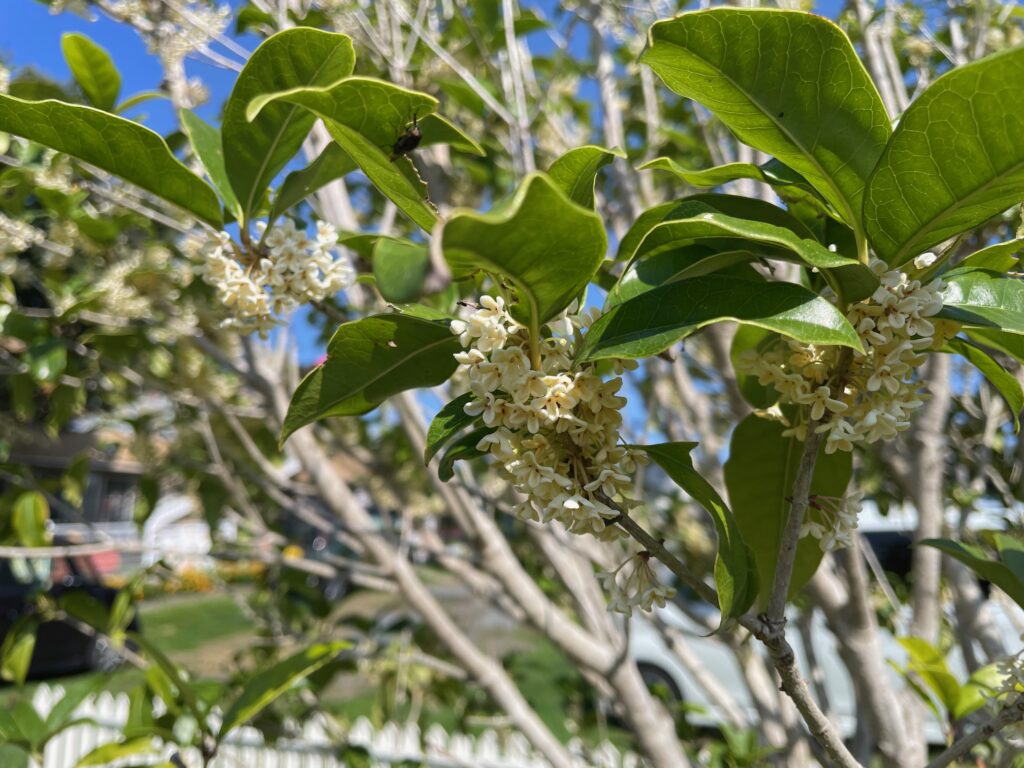 今年の春に園庭に移植した金木犀と銀木犀が無事に花をつけました。かぐわしい甘い香りが園庭に漂い、嗅いだことはあるけど実物を見るのは初めてという子どもたちの目と鼻を楽しませています。